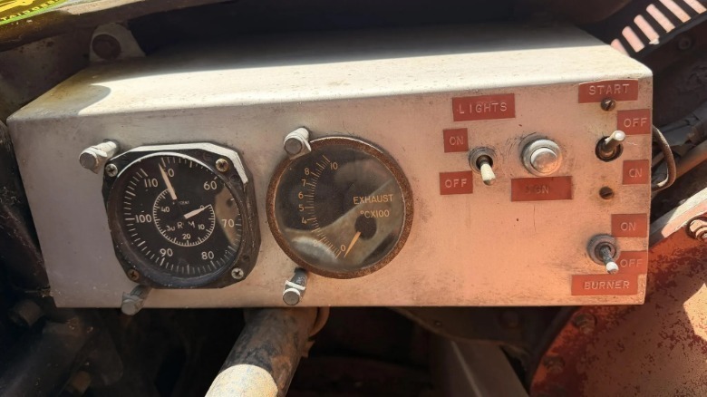 The engine itself takes up almost all the internal space. There is only a narrow “nook” left for the driver on one side; the fuel tank is located on the other side. The instrument panel, of course, is non-standard: the tachometer here is marked to values u200bu200bthat the 390 cc V8 could not even dream of, plus there is an exhaust temperature sensor.