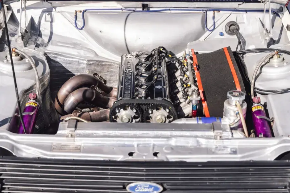 The car was purchased by Ken Block in 2008, after which it underwent a complete redesign. The Quick Motorsport workshop was involved in preparations for the Gymkhana Grid competition. Little remains of the production Escort: the body has been strengthened and supplemented with carbon elements, including an air intake on the roof and a wing.